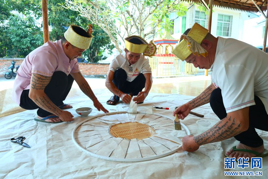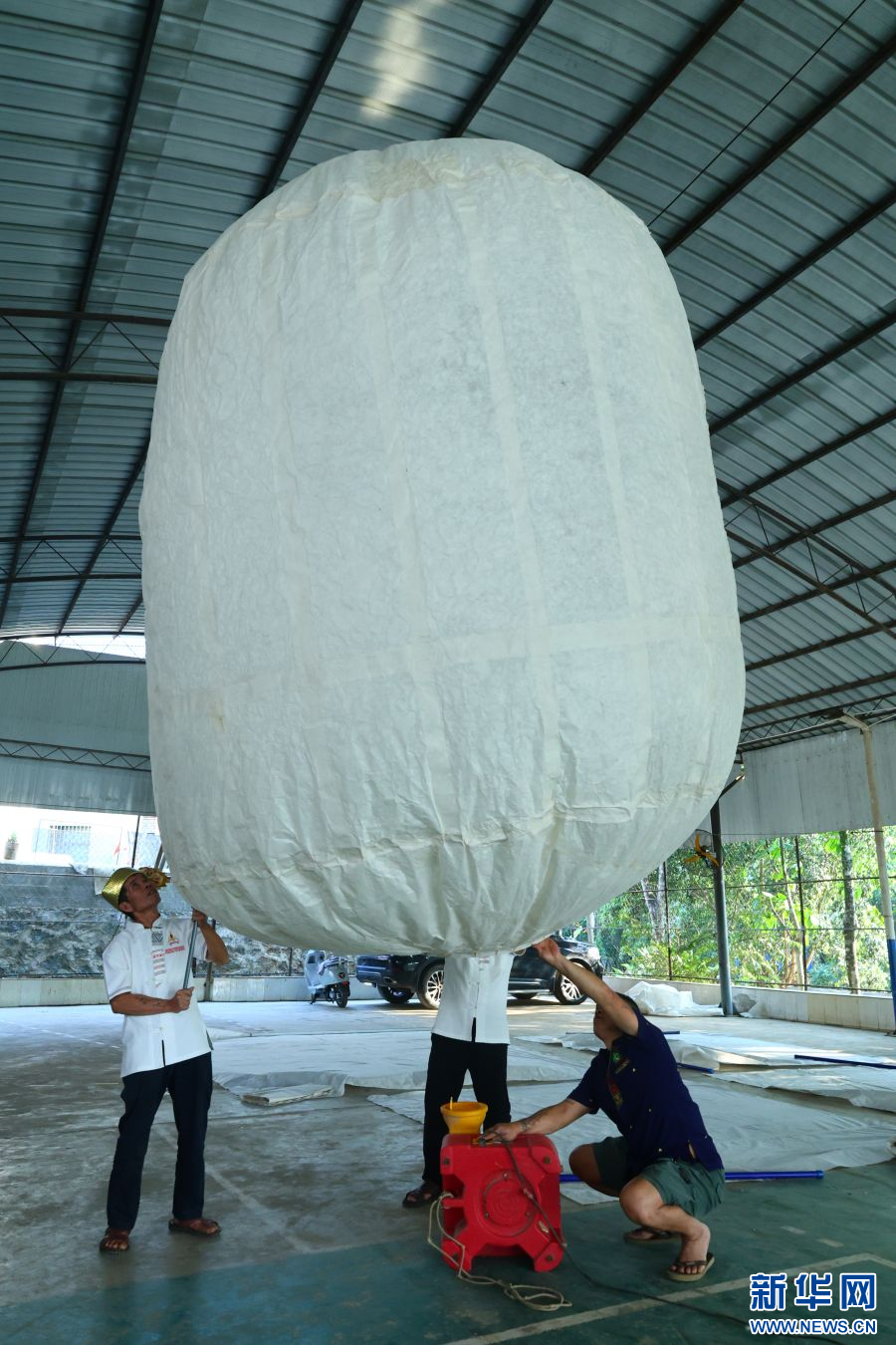 在西雙版納傣族自治州景洪市嘎灑街道曼勐村,匠人們正在準備制作傣家傳統手工孔明燈,村民巖香罕就是其中一位匠人。12歲時,巖香罕便開始學習制作孔明燈,迄今已有44年,聲名遠揚。