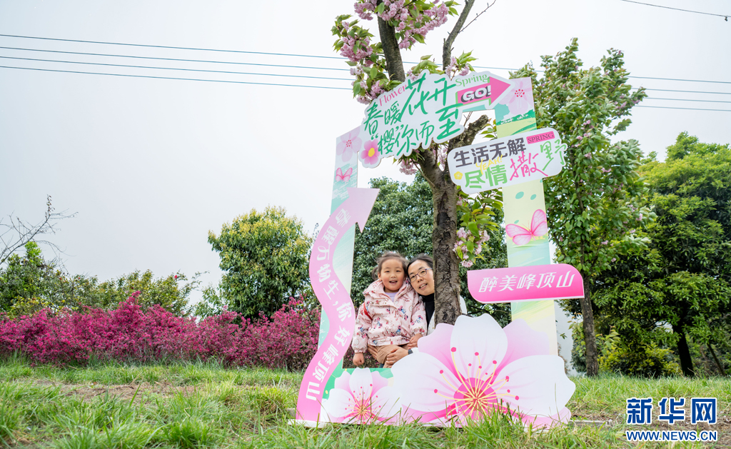 游客正在峰頂山旅游景點拍照打卡(4月12日攝)。新華網發(曾三東 攝)