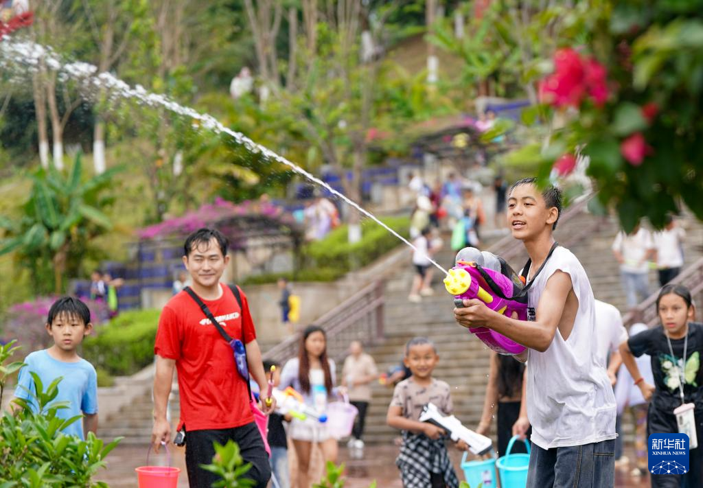 當日,云南多地舉行潑水節活動,各族群眾和游客用相互潑水的方式互送祝福,慶祝潑水節。