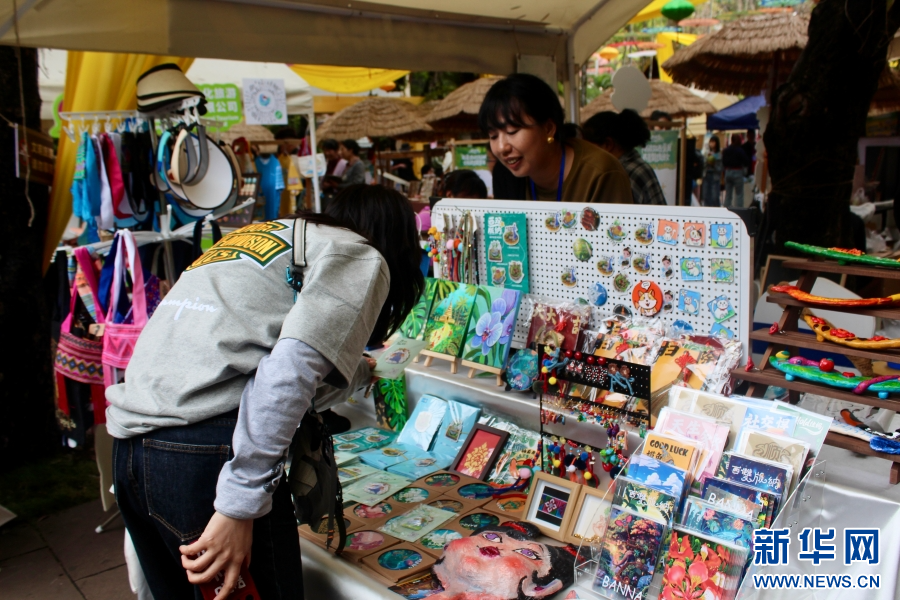 游客在文創攤位前挑選文創產品(4月13日攝)。新華網發(和新蘭 攝)
