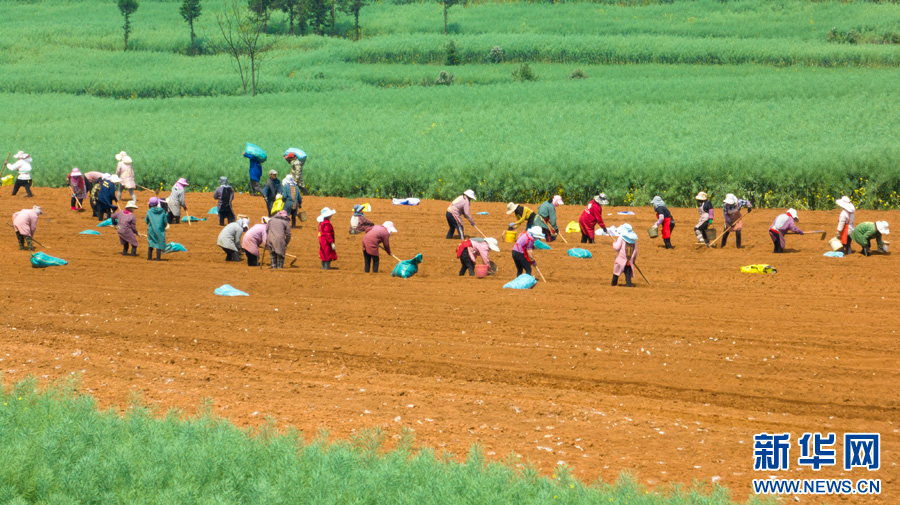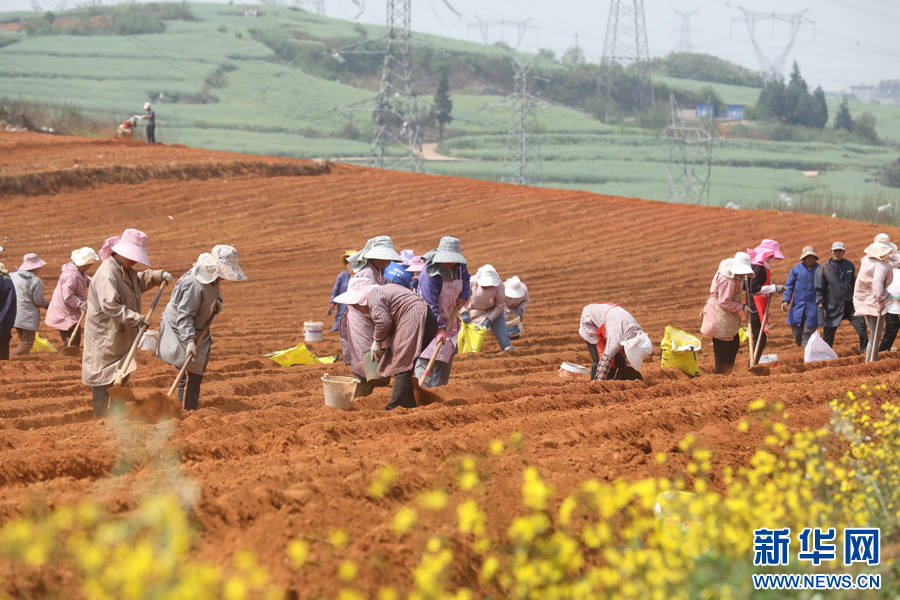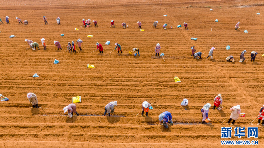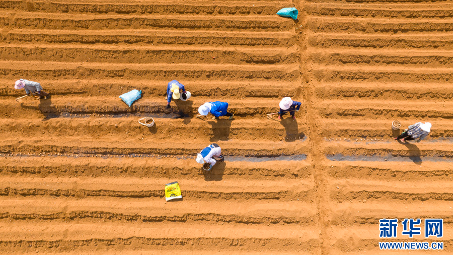 村民投放姜種(4月14日攝)。新華網發(侯映 攝)