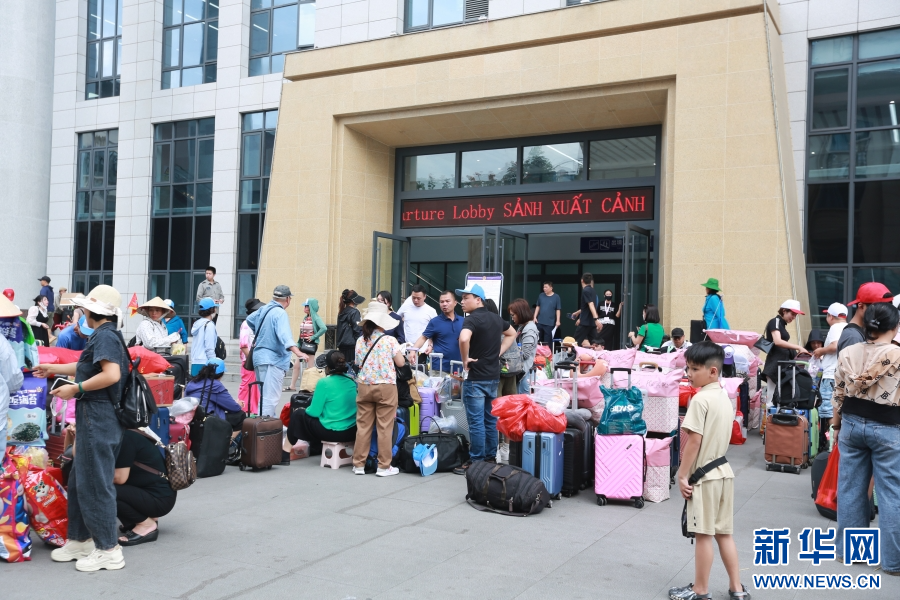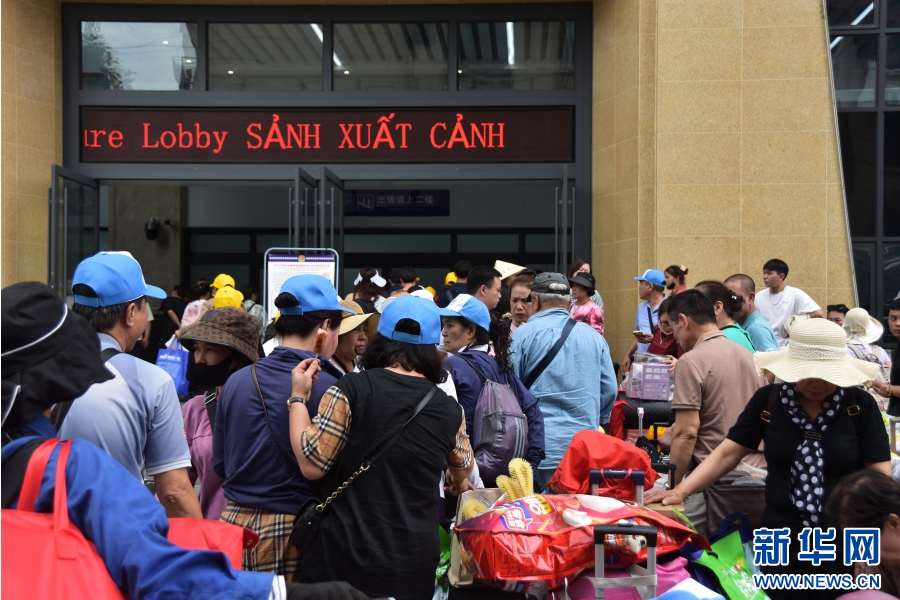 結束“中國游”的越南游客有序進入中國河口公路口岸南溪河聯檢大樓辦理出境手續(5月2日攝)。新華網發(薛瑩瑩 攝)