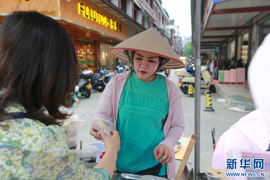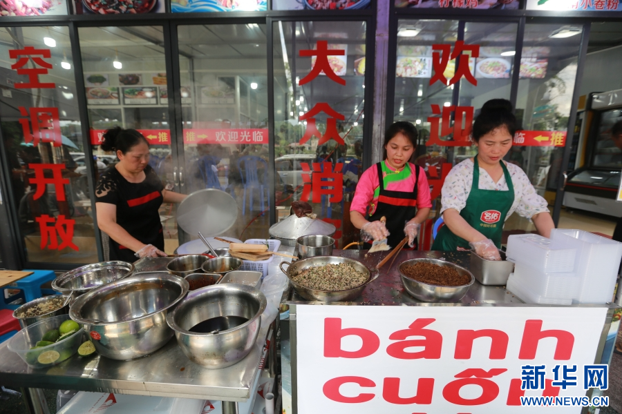 在云南省紅河州河口縣,越南商販正在制作越南小卷粉(5月2日攝)。新華網發(薛瑩瑩 攝)