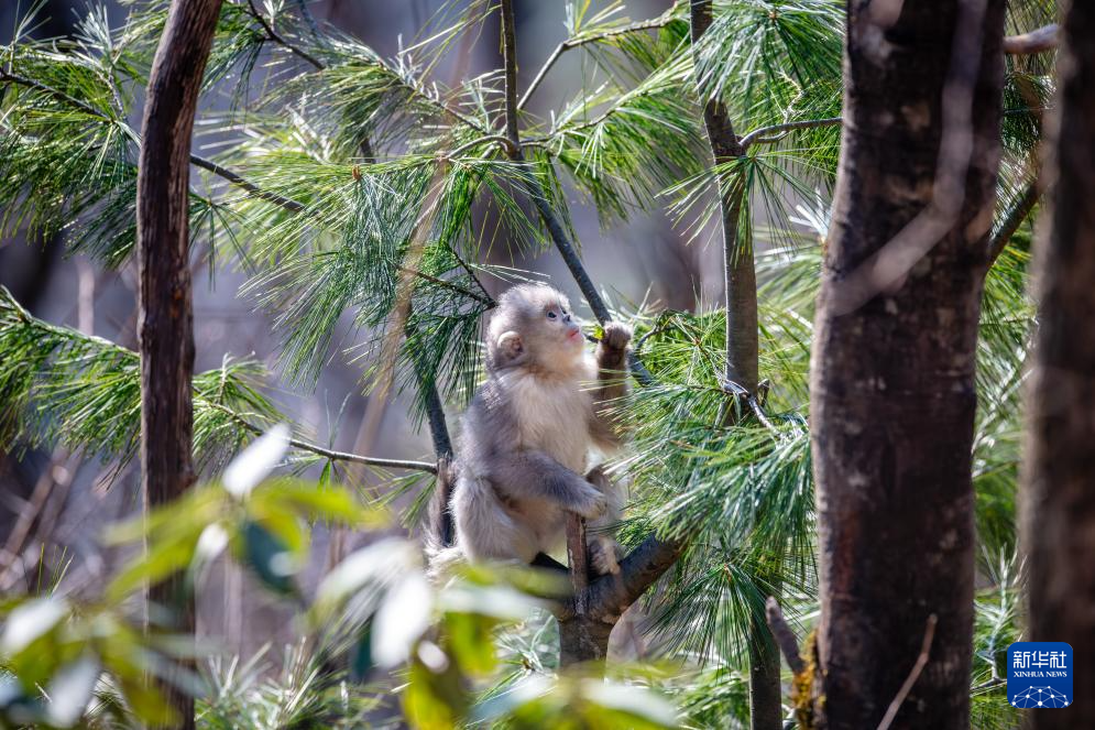 這是2025年3月10日在白馬雪山國家級自然保護區拍攝的滇金絲猴。新華社記者 胡超 攝