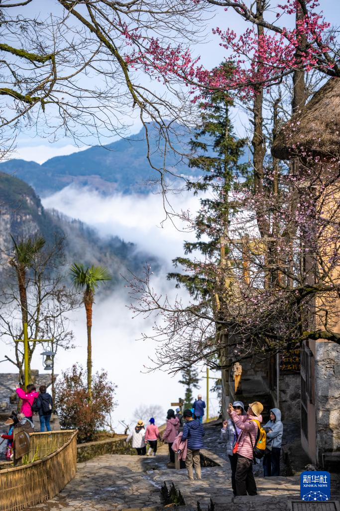 2月26日,游客在云南省元陽縣阿者科村觀光游覽。新華社記者 胡超 攝