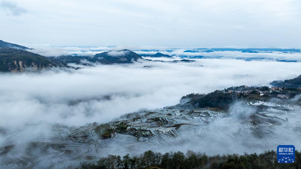 這是2月26日在云南省元陽縣拍攝的哈尼梯田風光(無人機照片)。新華社記者 胡超 攝