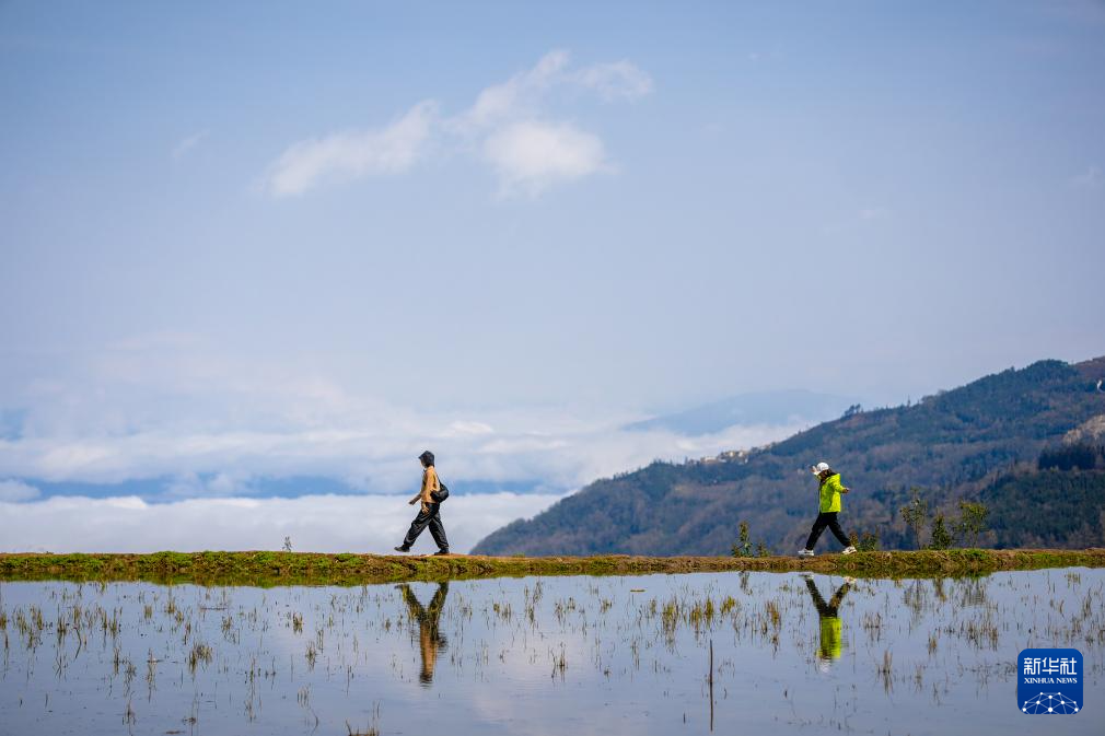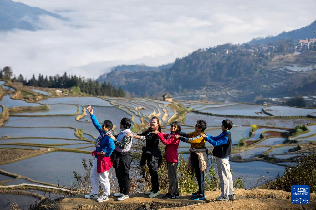 2月26日,游客在云南省元陽縣阿者科村的梯田游覽。新華社記者 胡超 攝