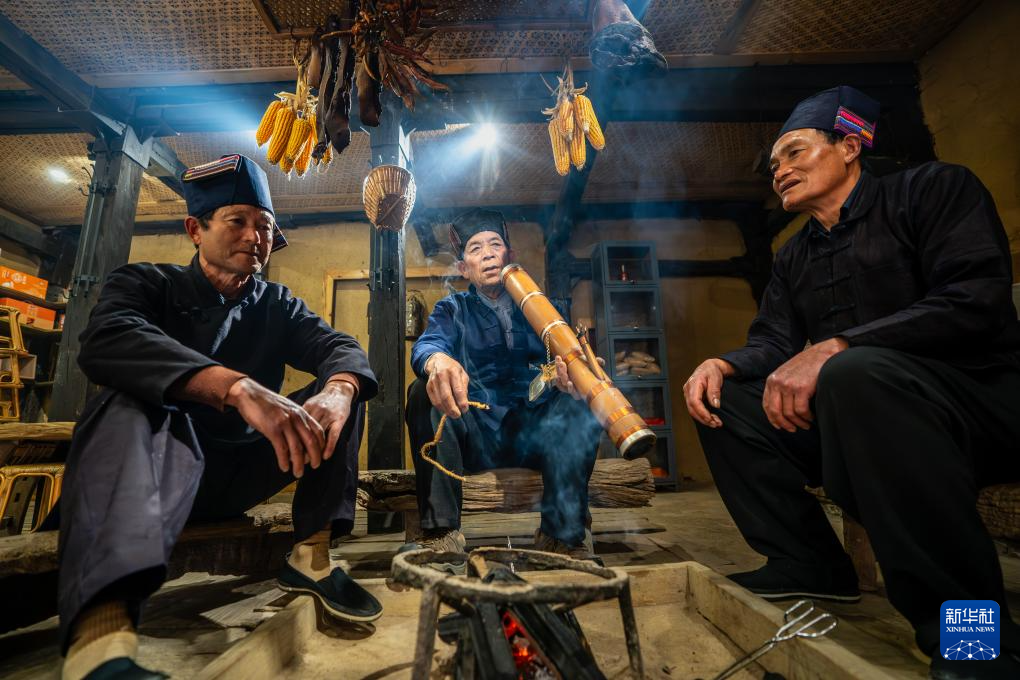 2月26日,在云南省元陽縣阿者科村,國家級非物質文化遺產傳承人馬建昌(中)和徒弟一起演唱《哈尼古歌》。新華社記者 胡超 攝