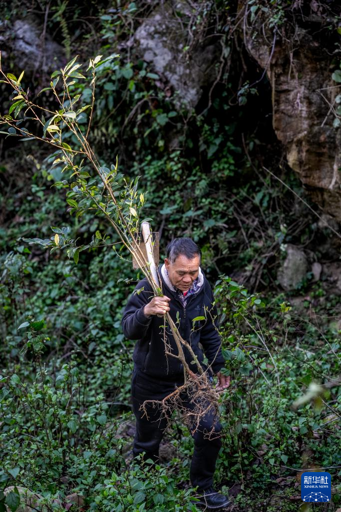 2月27日,在云南省元陽縣阿者科村,護林員楊正有上山植樹。新華社記者 胡超 攝
