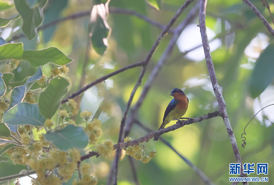 藍枕花蜜鳥立于樹枝上(5月12日攝)。新華網發(楊學飛 攝)