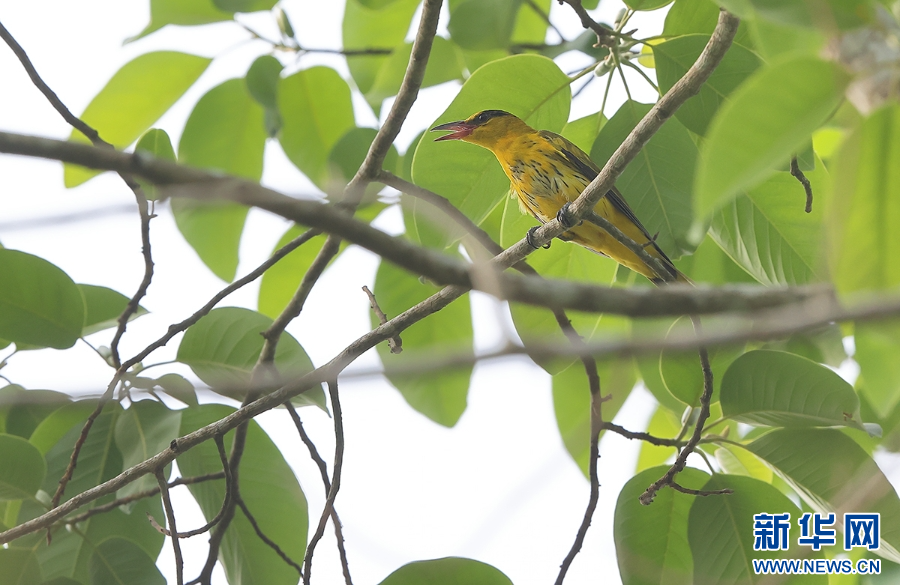 細嘴黃鸝在“鳴唱”(5月12日攝)。新華網發(楊學飛 攝)