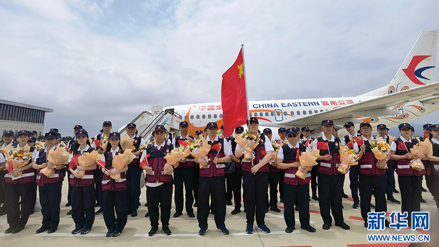 中國政府援緬衛生防疫隊返昆(5月18日攝)。新華網 范芳鈺 攝