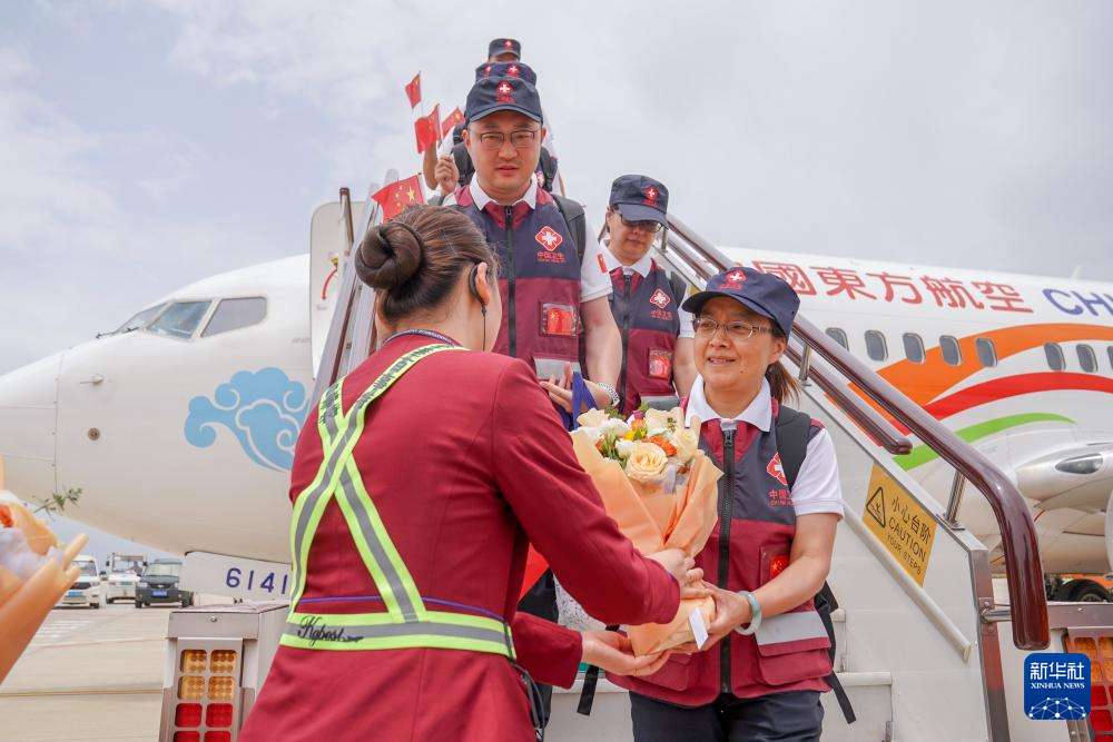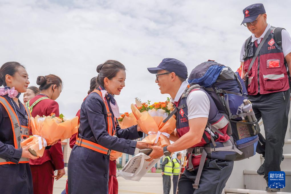 當日12時許,中國政府援緬衛生防疫隊在圓滿完成震后防疫援助任務后,乘機抵達昆明長水國際機場。緬甸7.9級地震發生后,按照黨中央統一部署,中國政府援緬衛生防疫隊于4月19日出發,赴重災區曼德勒省開展為期1個月的災后衛生防疫工作。