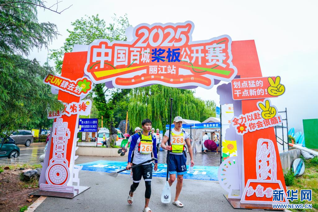 新華網昆明5月25日電(記者 李溪巖)2025中國百城槳板公開賽(麗江站)24日在云南省麗江市玉龍縣文筆公園水域舉行,200名運動員齊聚于此,上演水面上的速度與激情。