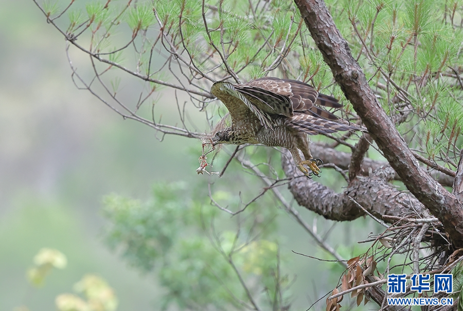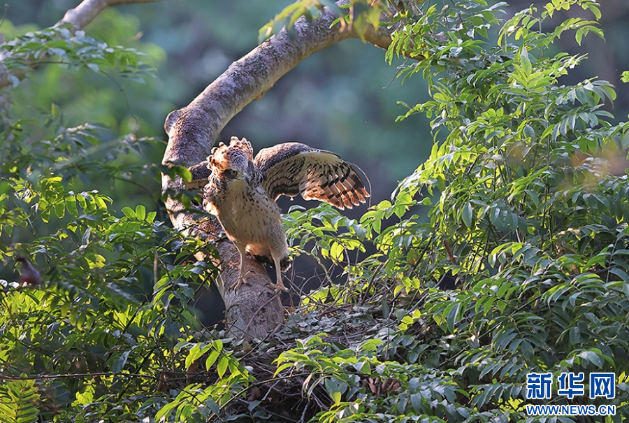 蛇雕雛鳥練習飛翔(5月23日攝)。新華網發(楊學飛 攝)
