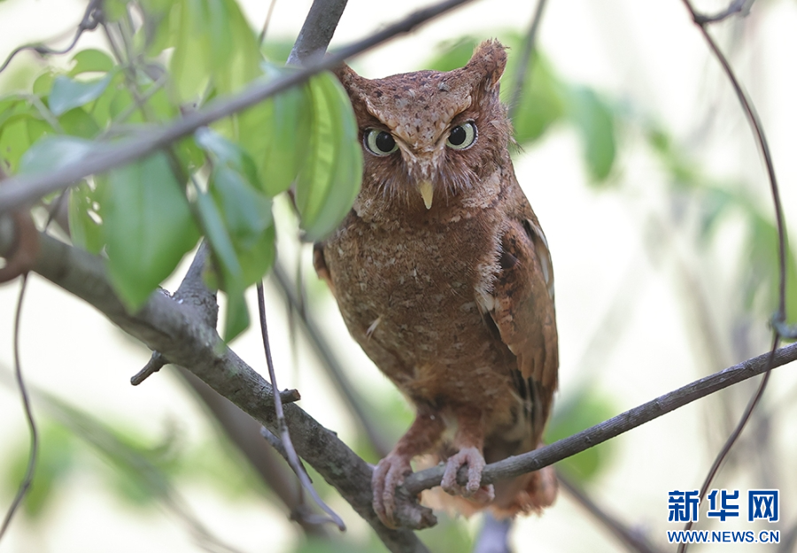 黃嘴角鸮立于枝頭(5月18日攝)。新華網發(楊學飛 攝)