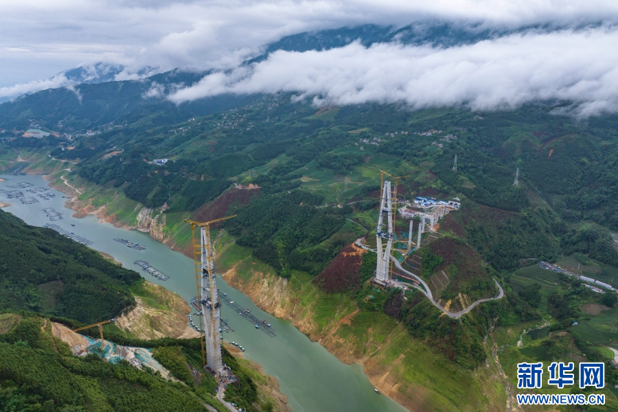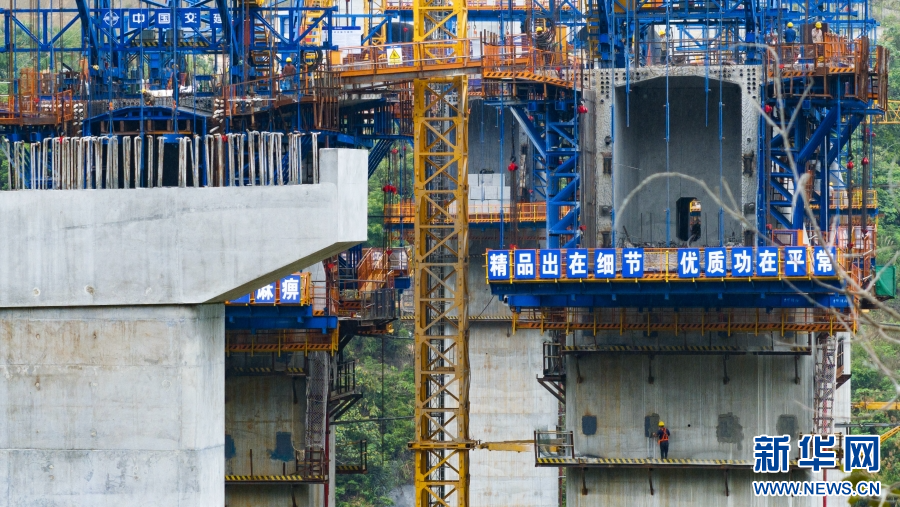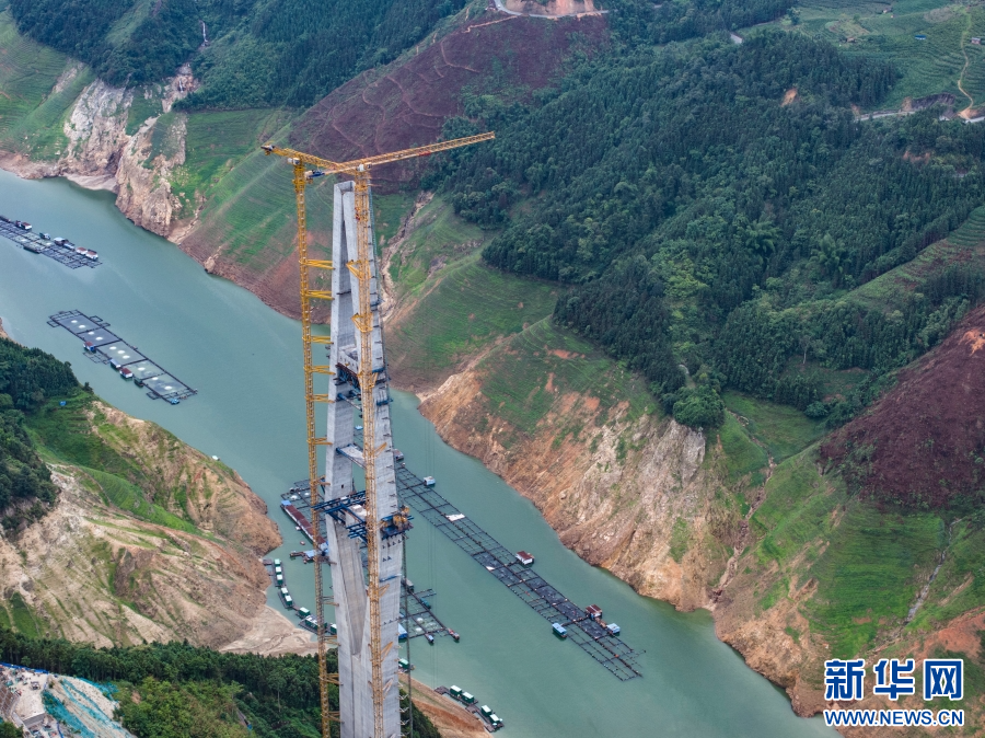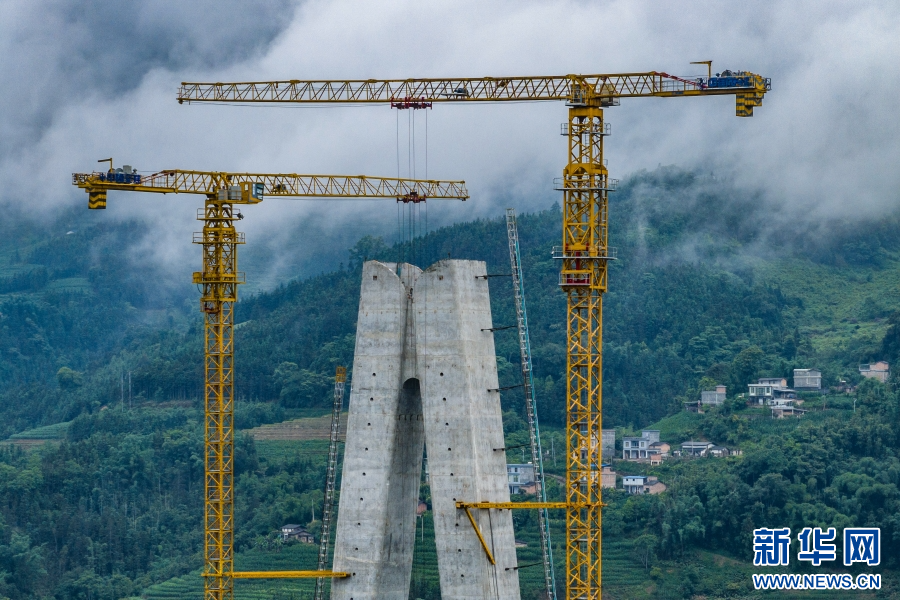 “天麻高速”馬鹿塘特大橋封頂的主墩(5月26日攝)。新華網發(熊平祥 攝)