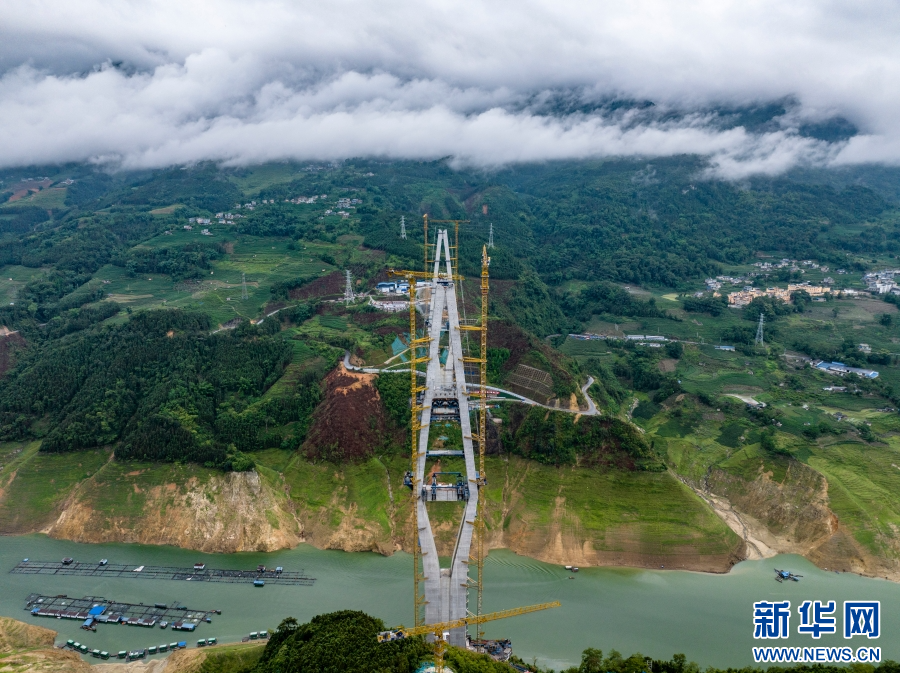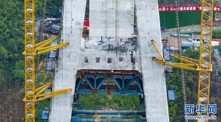 “天麻高速”馬鹿塘特大橋施工現場(5月26日攝)。新華網發(熊平祥 攝)