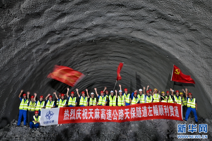 “天麻高速”天保隧道左幅貫通(5月26日攝)。新華網發(熊平祥 攝)
