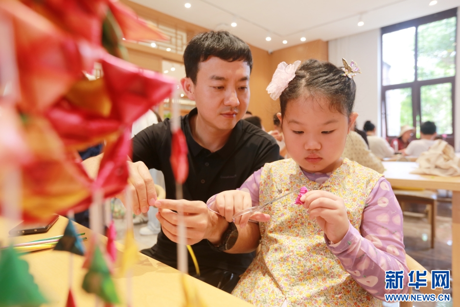 恰逢“六一”遇上端午節假期,云南省蒙自市紅河書院開展“菱角織夏 艾草寄情”端午民俗親子手作課(5月31日攝)。新華網發(薛瑩瑩 攝)