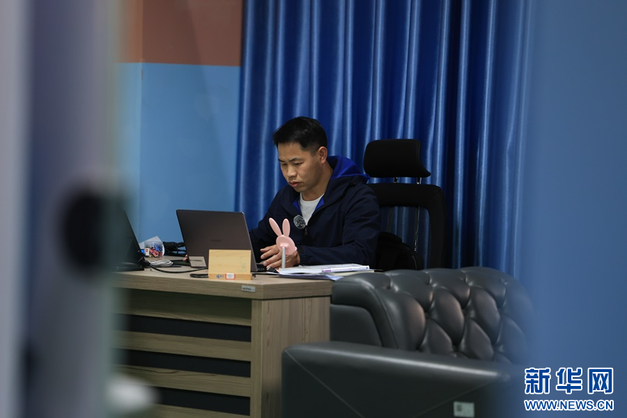 深夜還在辦公的劉旺才(3月7日攝)。