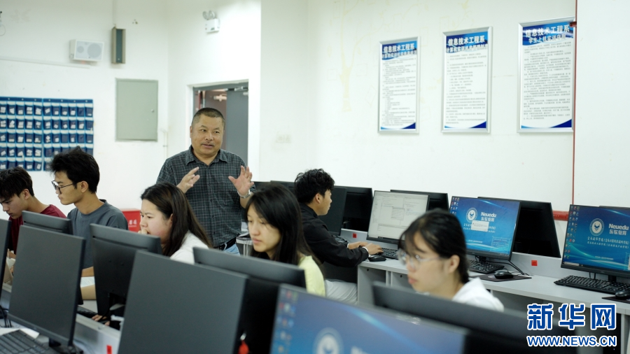 陶冠華指導學生熟悉課程內容(5月7日攝)。新華網發(李宗蓉 攝)
