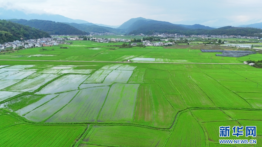 這是6月4日拍攝的云南省騰沖市西源街道馬常村田野(無人機照片)。新華網發(趙輝 攝)