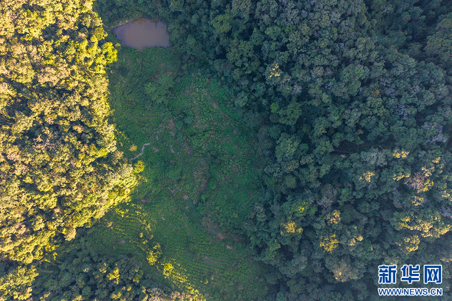 航拍配備了硝塘和多種大象喜食植物的食物源基地(2024年11月17日攝)。新華網發(徐華陵 攝)