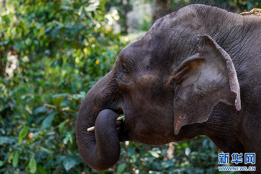 亞洲象在雨林里采食植物(3月9日攝)。新華網發(徐華陵 攝)