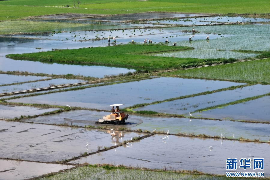 芒種節氣以來,云南省騰沖市和順鎮廣袤的田野上,“鐵?!鞭Z鳴,白鷺嬉戲,忙碌的農機、插秧的農人與成群覓食的白鷺,給夏種時節的田園增添了一道亮麗的風景線。(龔祖金)