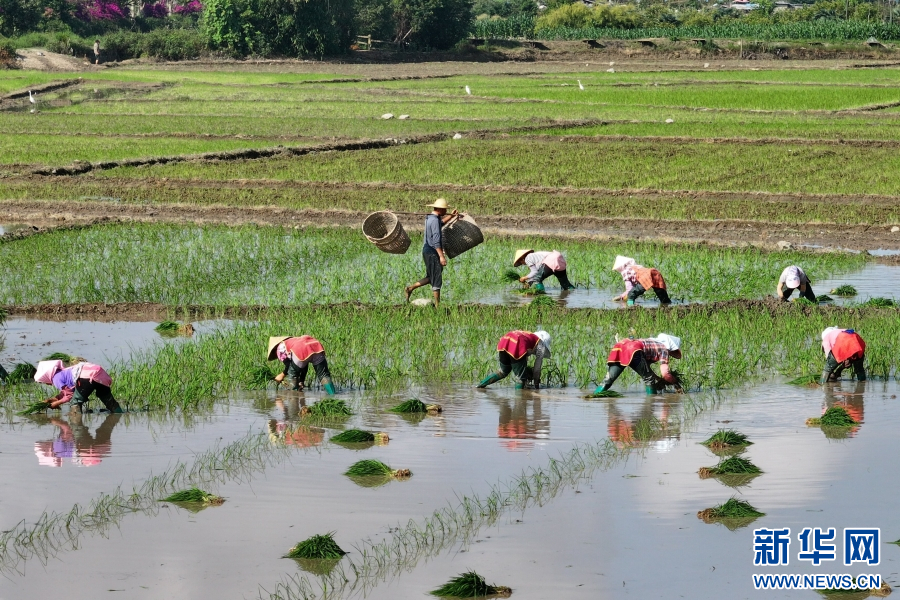 云南省騰沖市和順鎮,農人忙著插秧(6月15日攝)。新華網發(龔祖金 攝)