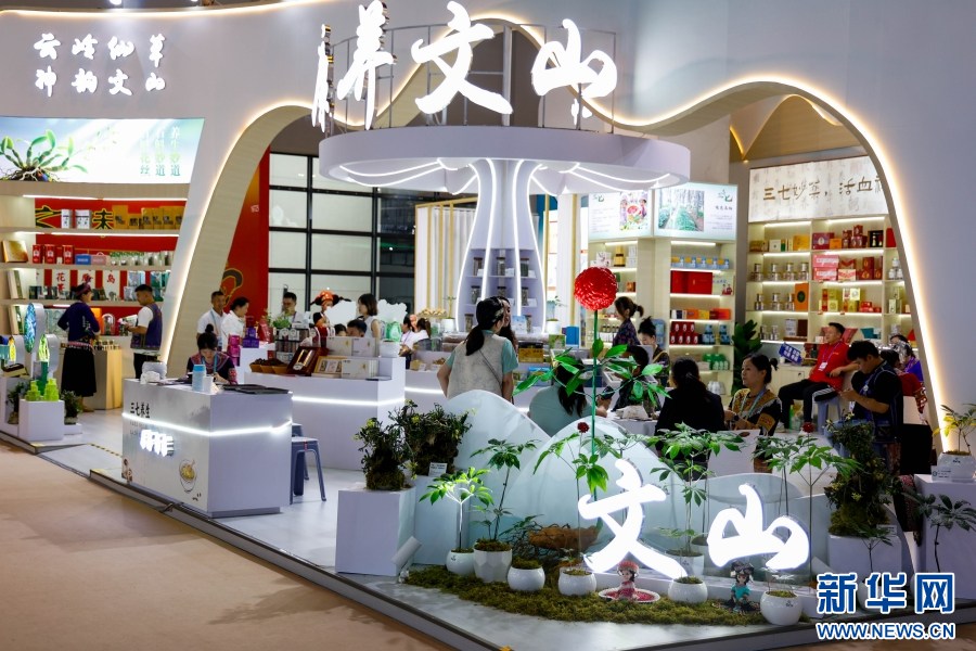 中藥材產業館文山展區(6月19日攝)。新華網發(劉云 攝)