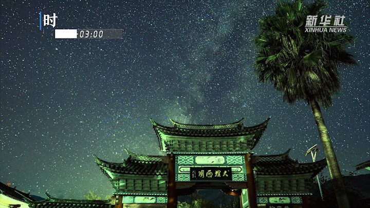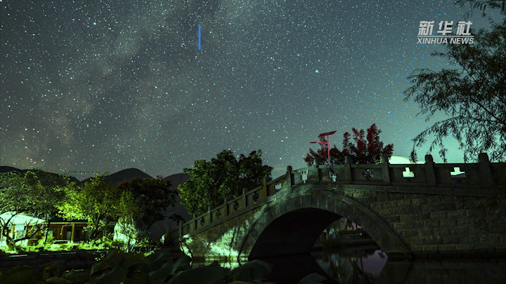 子時(23:00-01:00),風平浪靜,星辰環繞,劃出一道道星軌。