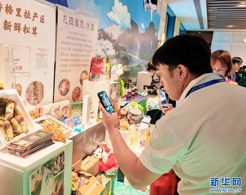 7月4日,一名采購商在第三屆香格里拉松茸論壇上拍攝松茸。新華社記者 浦超 攝