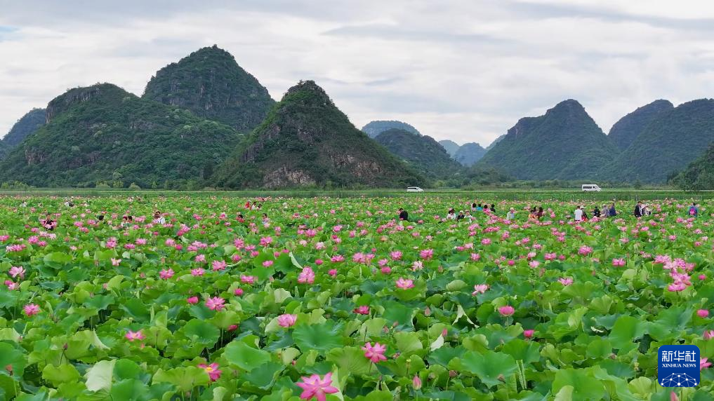 盛夏時節,云南省文山壯族苗族自治州丘北縣普者黑風景區風光如畫,萬畝荷塘迎來盛放。