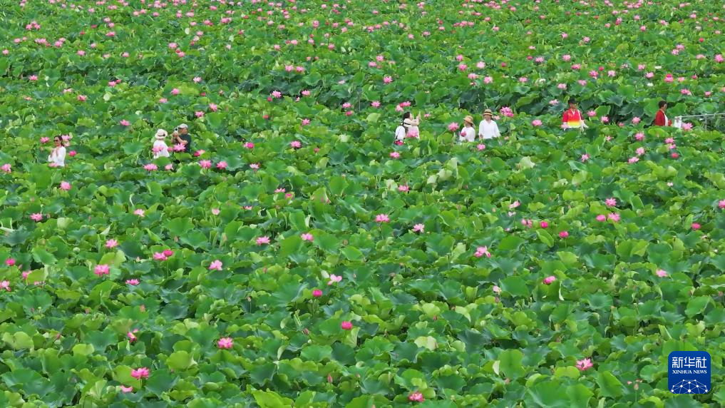 游人徜徉其間,或駐足賞景,或拍照留念,沉醉于這片夏日限定的荷海風光之中。