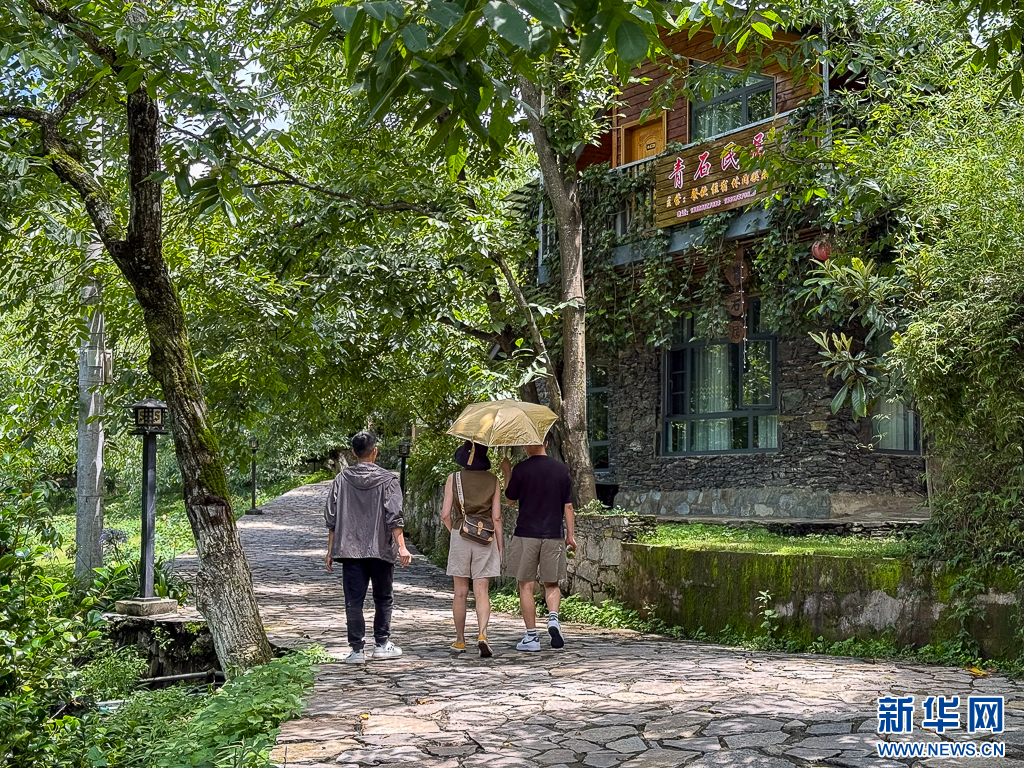 漫步在光明村的游客(7月11日攝)。新華網發(劉東 攝)