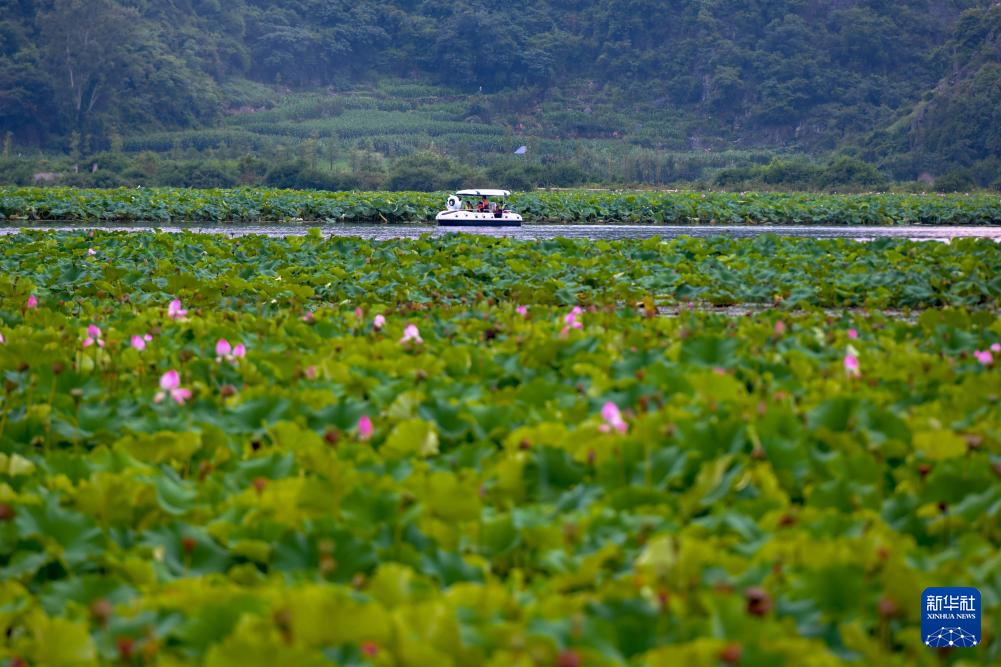 盛夏時節,云南省文山壯族苗族自治州丘北縣普者黑景區內萬畝荷花初綻,碧葉連天,與獨特的喀斯特峰林、清澈湖泊繪就一幅獨具特色的山水畫卷,吸引八方游客紛至沓來。