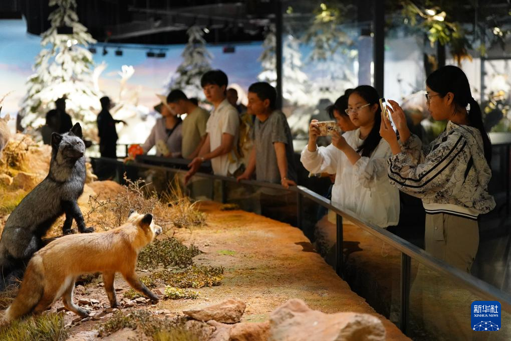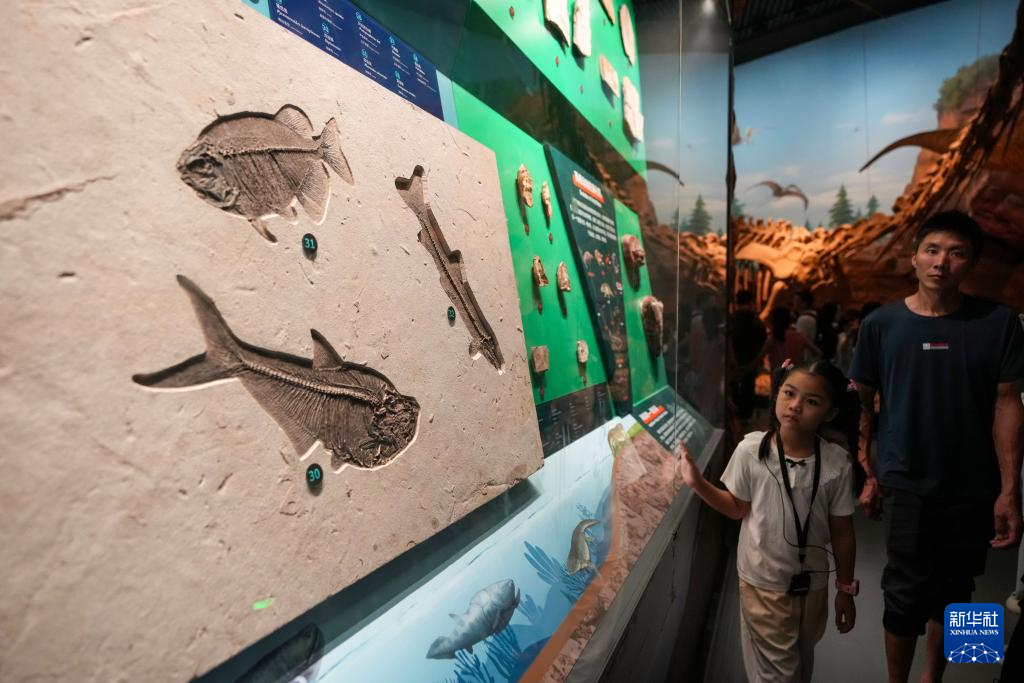 7月15日,游客在澄江化石地世界自然遺產博物館參觀動物標本。新華社記者 陳欣波 攝