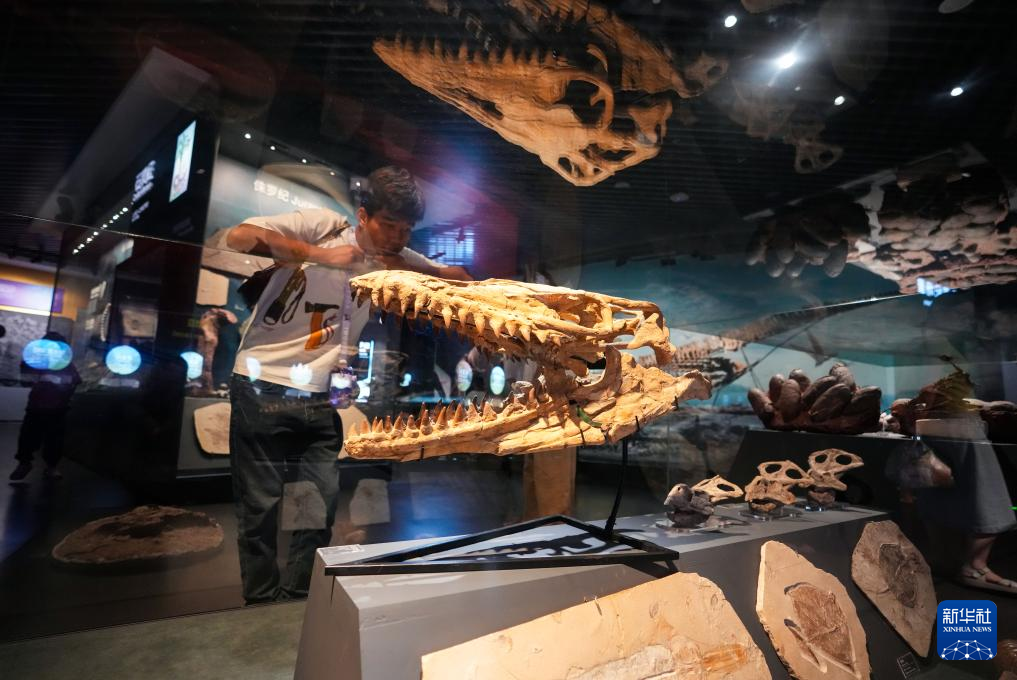 7月15日,游客在澄江化石地世界自然遺產博物館參觀古生物頭骨化石。新華社記者 陳欣波 攝