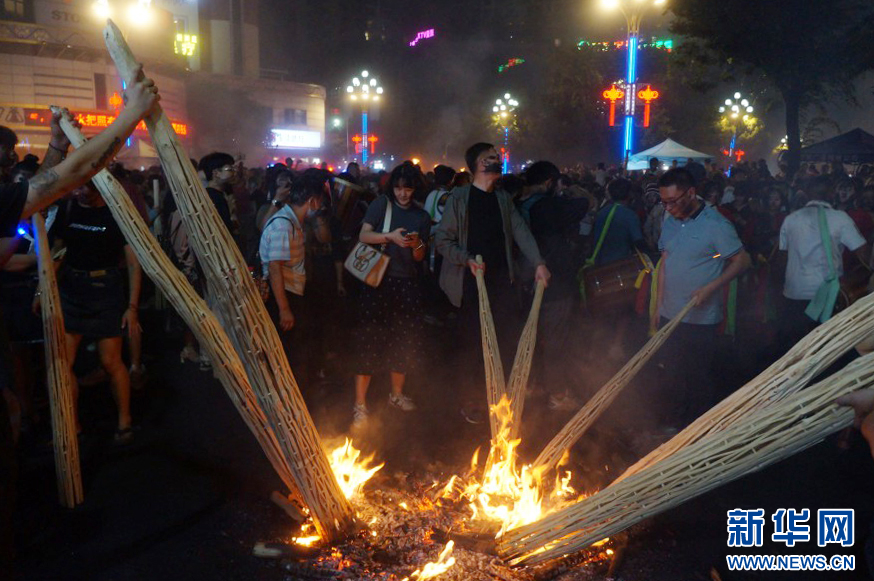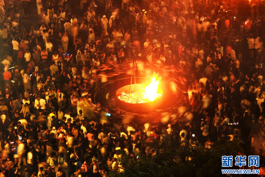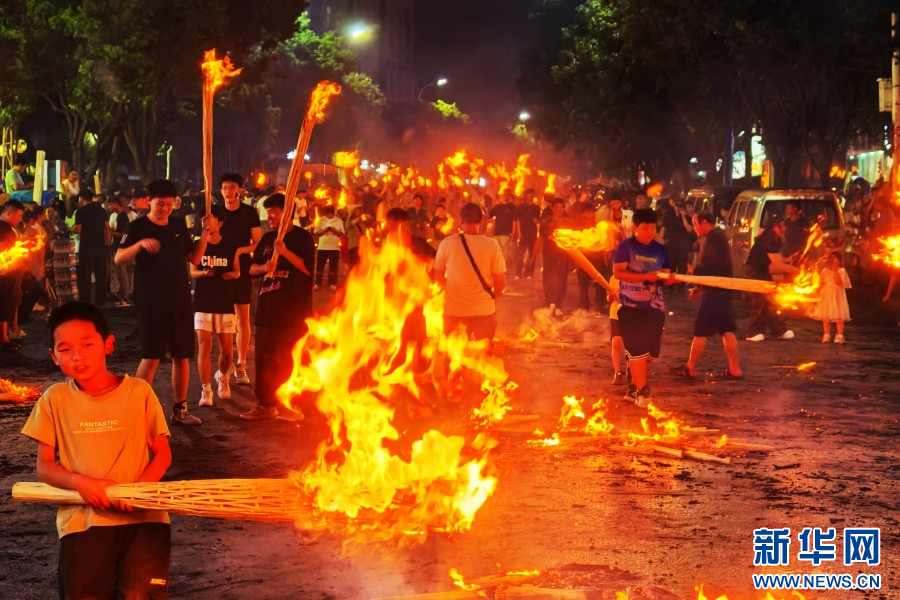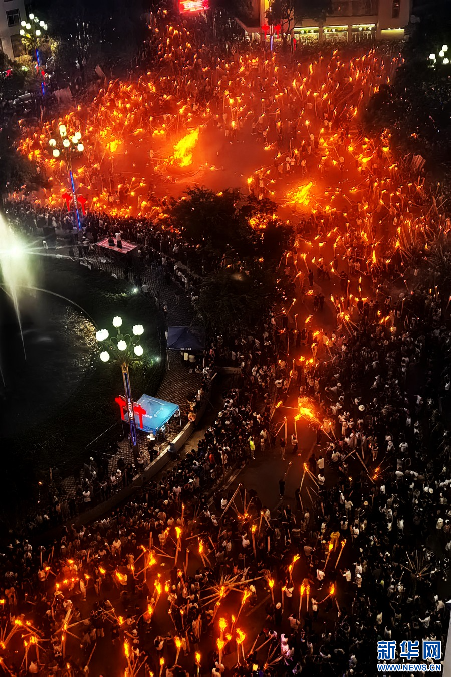 群眾點燃火把(7月18日攝)。新華網 范芳鈺 攝