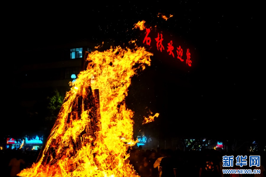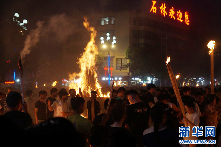 石林火把節現場(7月18日攝)。新華網 趙普凡 攝