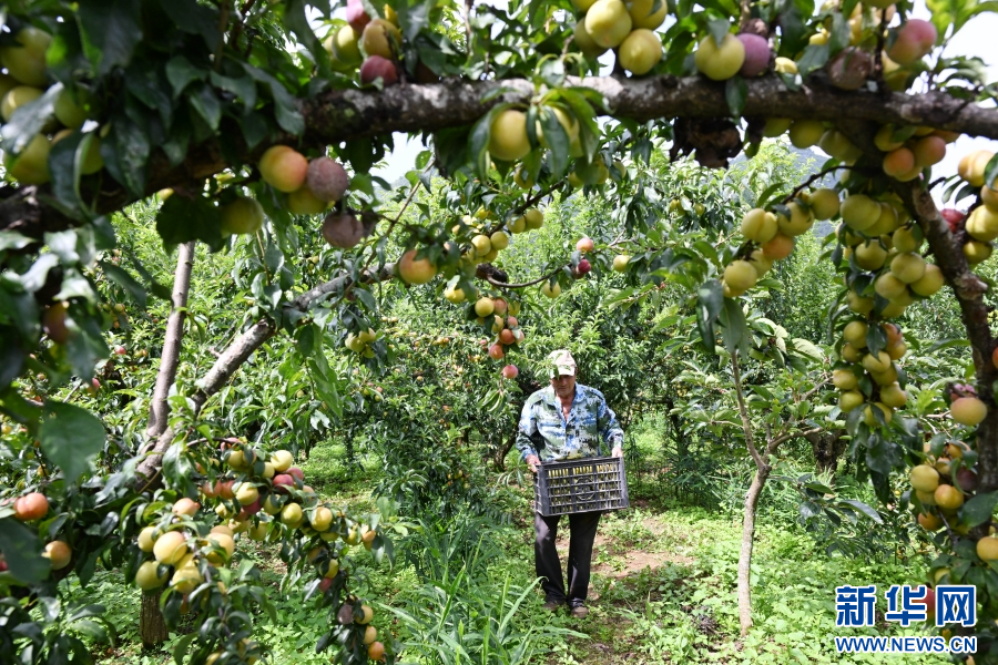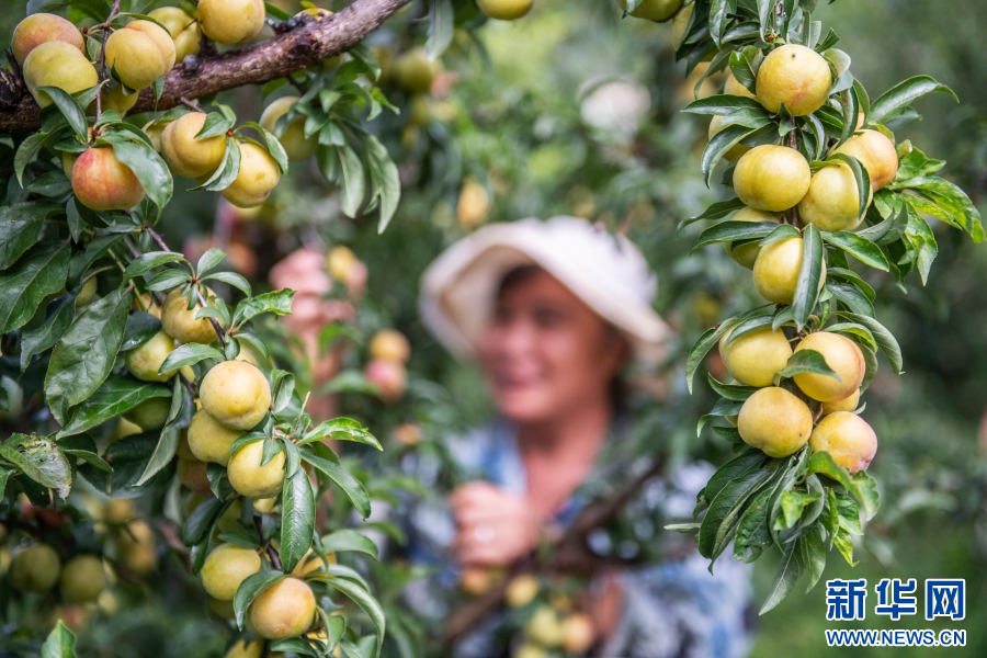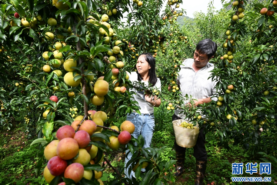 村民采摘李子(7月27日攝)。新華網發(熊平祥 攝)