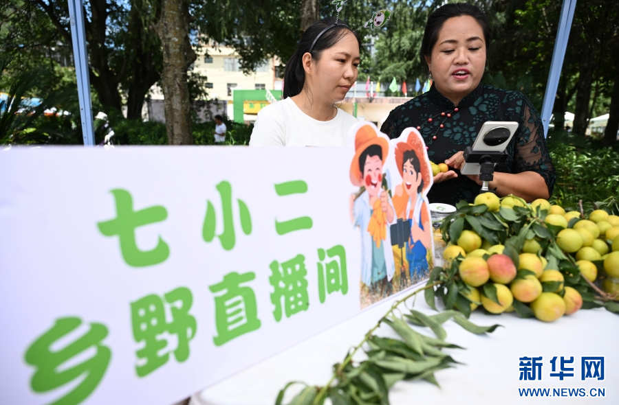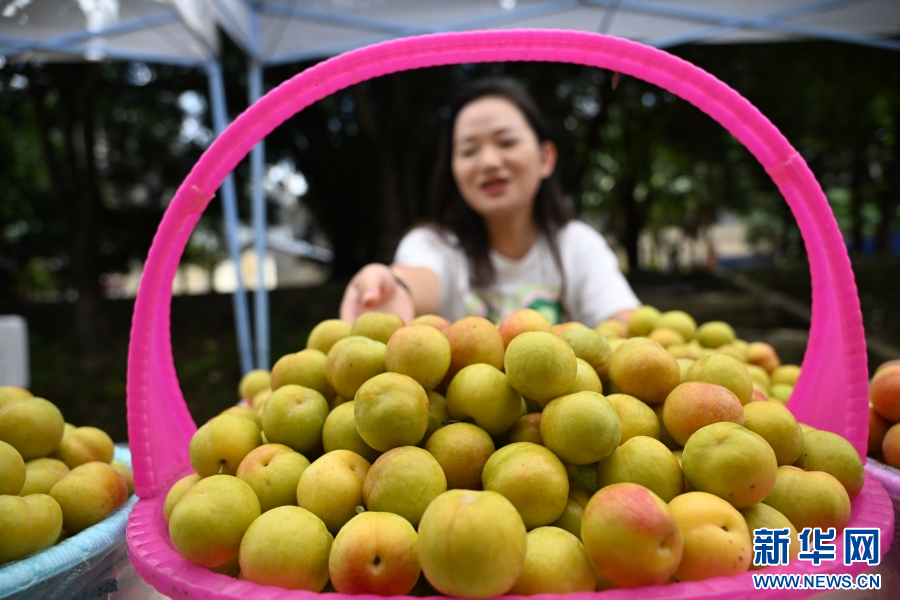 直播售賣李子(7月27日攝)。新華網發(熊平祥 攝)