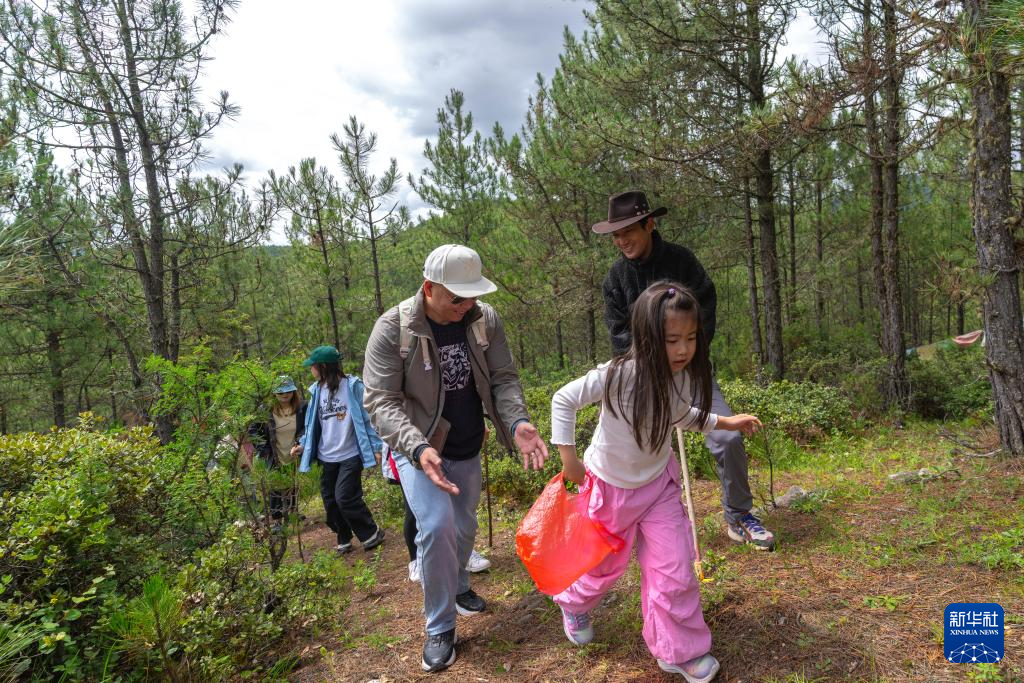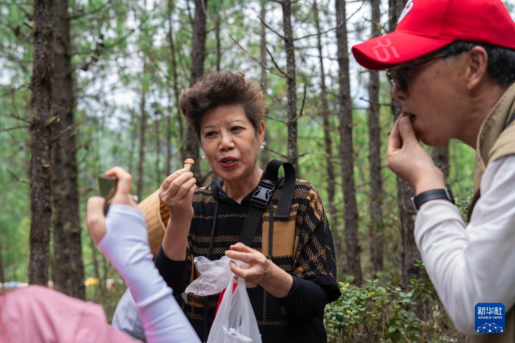 7月25日,游客在香格里拉市吉迪村體驗松茸采摘。新華社記者 高詠薇 攝