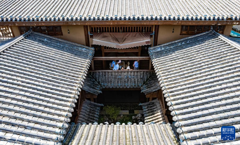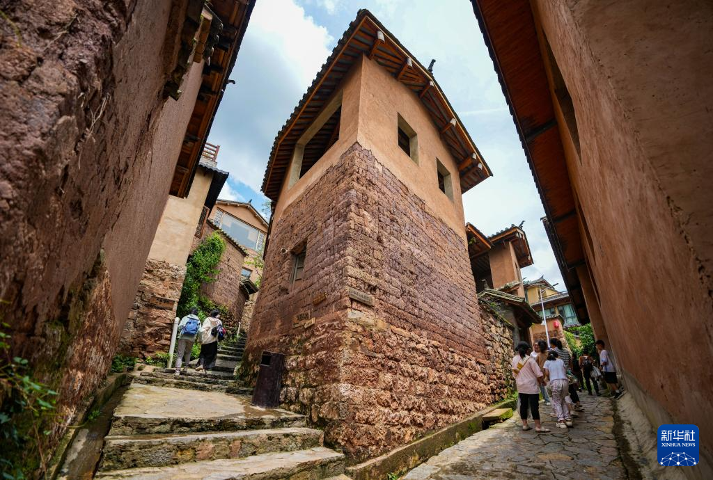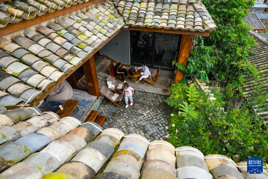 7月27日,游客在樂居村內走過修繕后的民居。新華社記者 陳欣波 攝