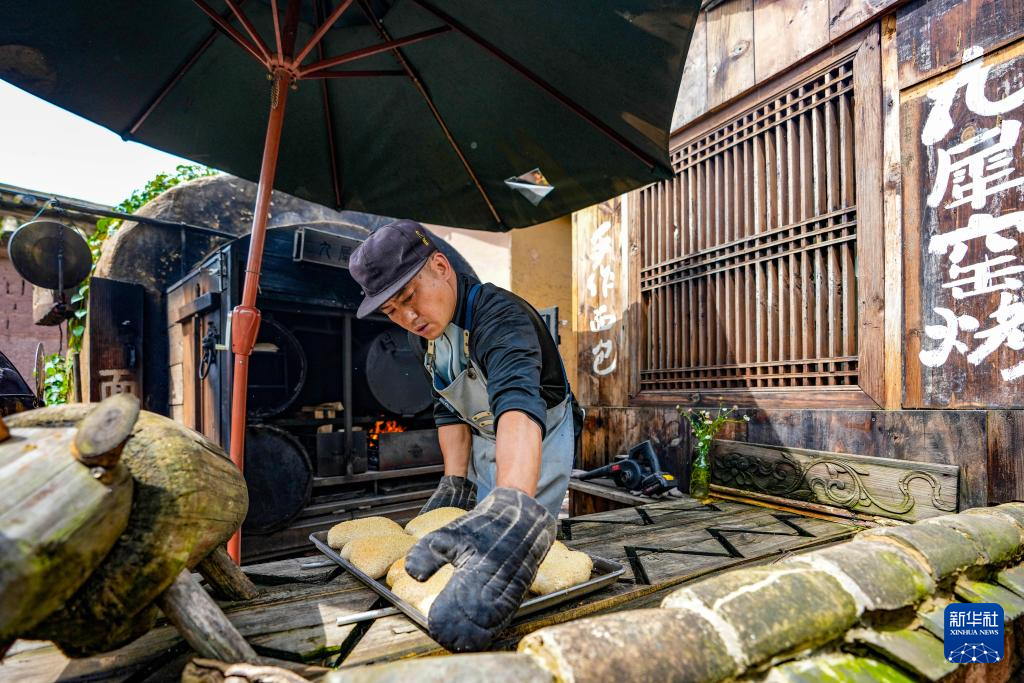 7月27日,工作人員在樂居村九犀面包店內制作面包。新華社記者 陳欣波 攝