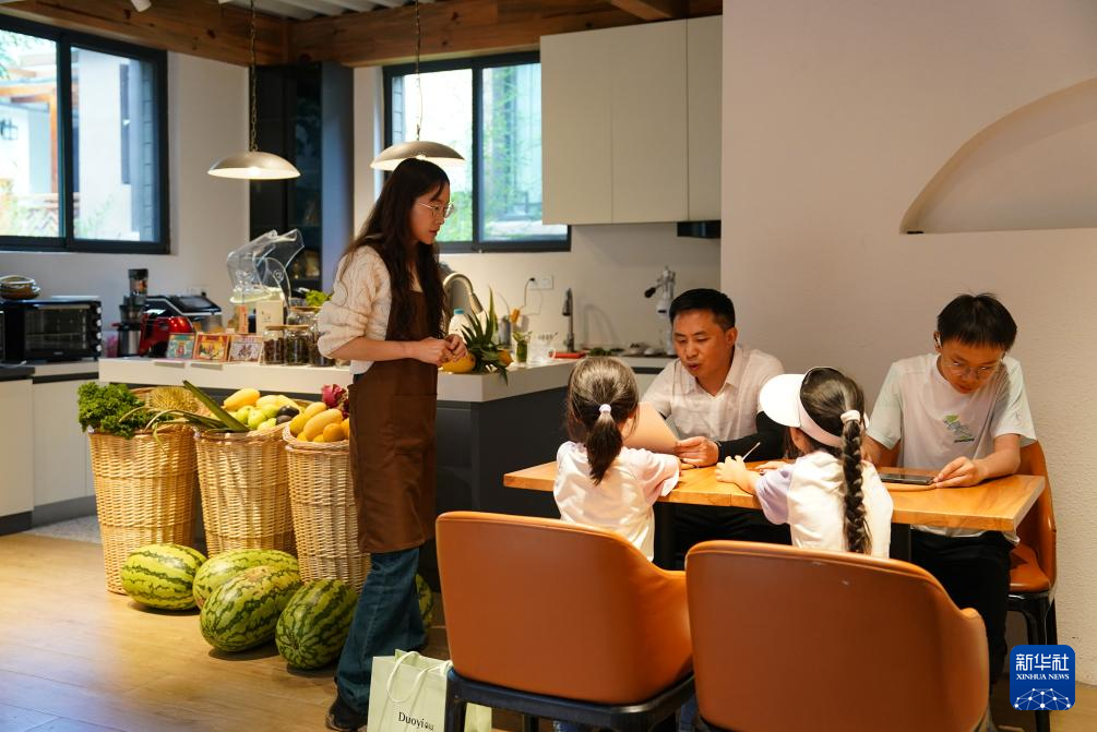 7月23日,幾名游客在樂居村的民宿內休息。新華社記者 陳欣波 攝