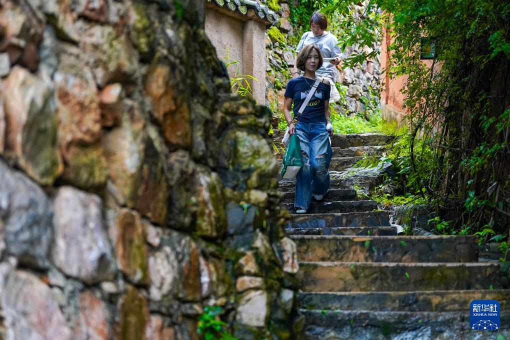 7月23日,兩名游客行走在樂居村內的石階上。新華社記者 陳欣波 攝