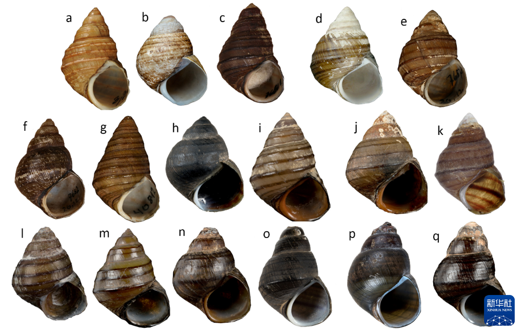 越田螺屬的17個物種,其中h到q為10個新種。(中國科學院昆明動物研究所供圖)